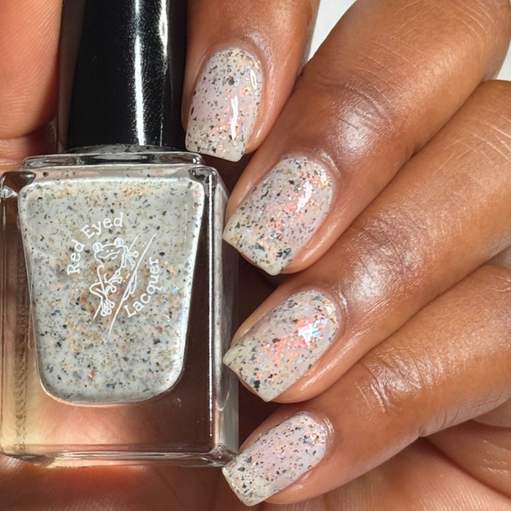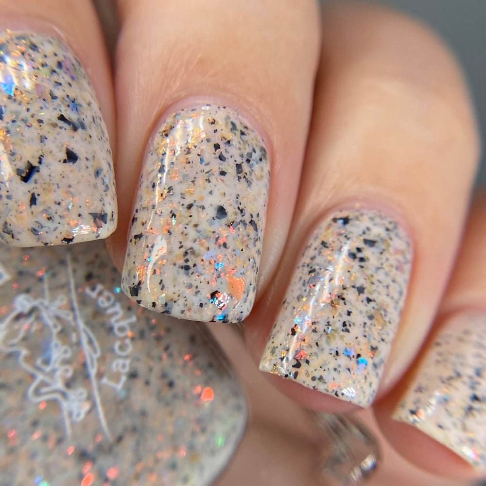 Inspired by the Salvador Dali painting, Persistence of Memory- An off white crelly with orange/gold shifting glass flakes, blue/green iridescent flakes and black flakes!
