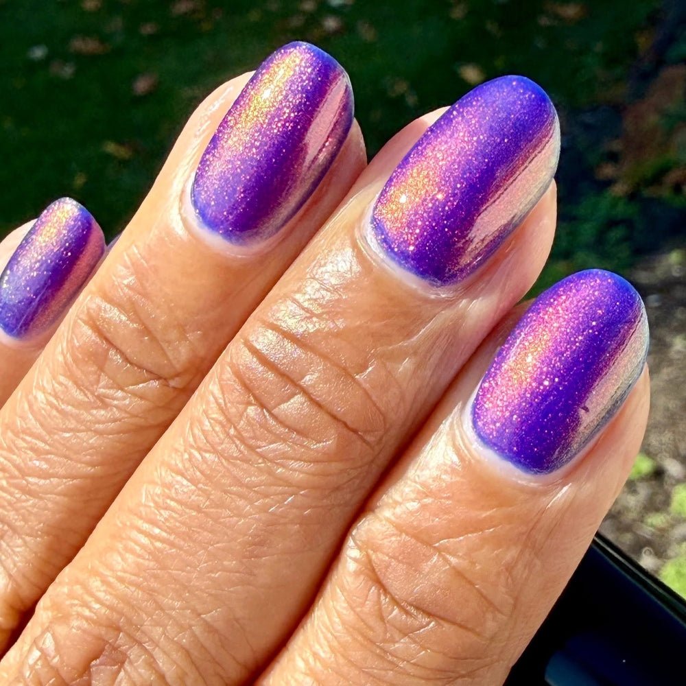We used Bea Arthur who played our favorite Golden Girl - Dorothy for inspiration. Resting Bea Face is a vivid cobalt blue with purple undertones and red to orange to copper shifting shimmer.