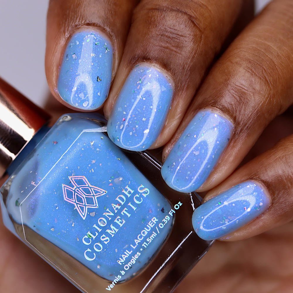 This is Clionadh's first-ever solar polish! Inspired by the inner transformation we feel when dreary days that have dragged on finally switch to one filled with bright sun and optimistic feelings. This polish serves as a reminder that even in times of sadness, there is a road to light and happiness.