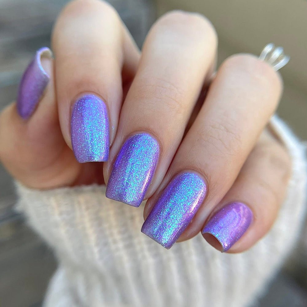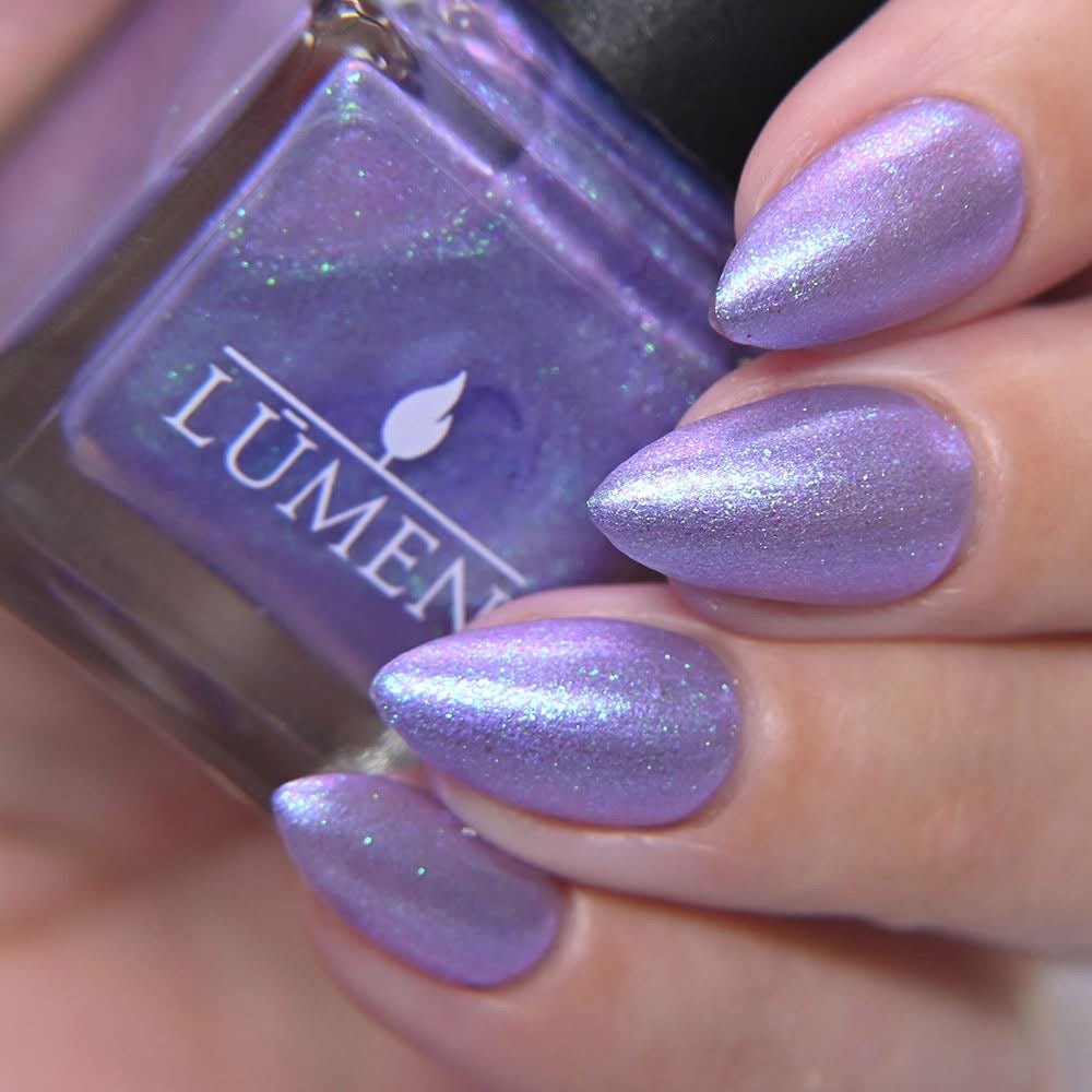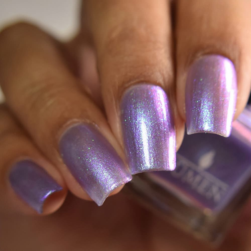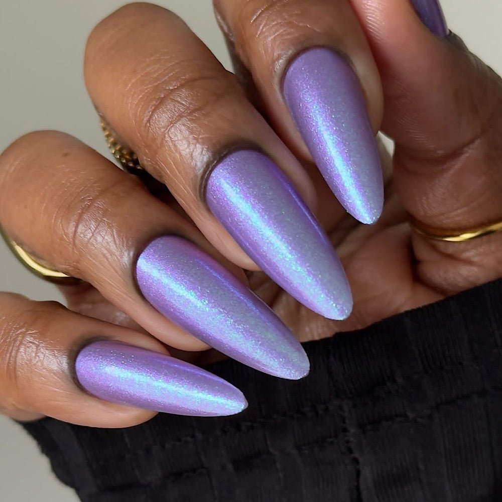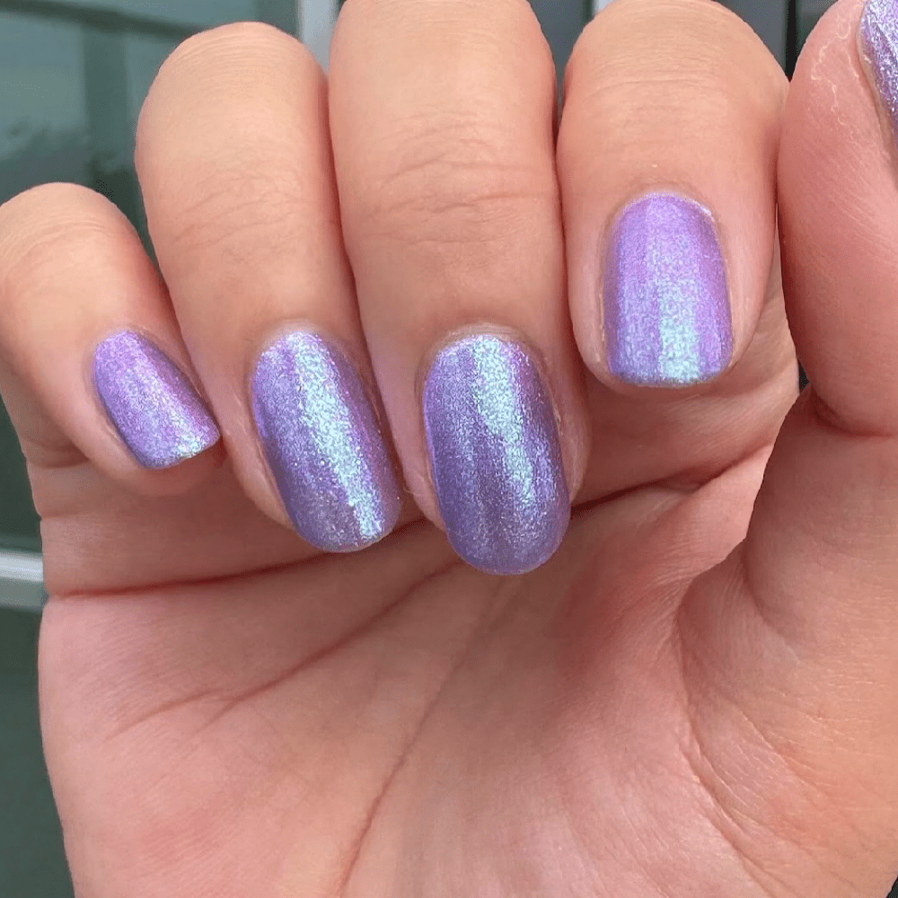 This shade captures the moment when you let go and simply float- unanchored, unhurried, taking time to recharge and feel at peace. Adrift is a gentle lavender with a purple to pink pearl shift and a large particle shimmer that shifts blue, to indigo, and green reminding you that stepping back to recharge isn’t drifting away it’s finding your way back to yourself.